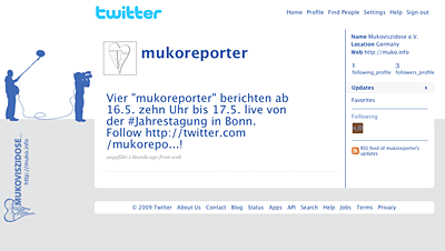In diesem Jahr bietet der Mukoviszidose e.V. in Zusammenarbeit mit vier Betroffenen einen neuen Service an: Über die Microblogging-Plattform twitter werden Katrin R., Stephan K., Miriam S. und Kathrin B. unter dem Namen mukoreporter abwechselnd ihre Eindrücke von der Jahrestagung vom 16. bis zum 17.…