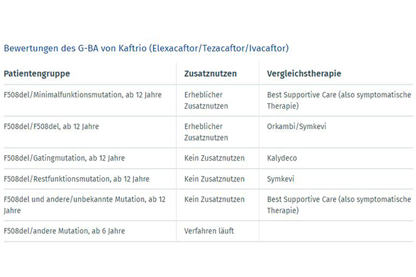 Vorherige Nutzenbewertungen von Kaftrio für Patienten ab 12 Jahren heterogen