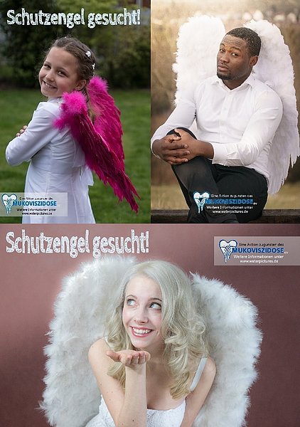Wassermann fotografiert Menschen mit Engelsflügeln, die so zu Schutzengeln für die Betroffenen werden. Alle Fotos finden Sie in der Fotogalerie auf der Website www.waterpictures.de und auf der Facebook-Seite von Heiko Wassermann. Durch das Teilen der Bilder auf den verschiedenen sozialen Netzwerken können alle helfen, über die Genkrankheit zu informieren und neue Schutzengel zu gewinnen.