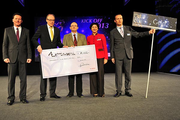 Auf dem Jahresmeeting wurden unter der Leitung von Margharet Feldgiebel, Geschäftsführerin des Bereichs Arbeitsschutz, Jürgen Seidl, Geschäftsführer MEWA Rodgau, und Hannes Steidinger, Geschäftsführer MEWA Weil im Schönbuch, die 10.000 Euro Spendengelder eingesammelt. Als feierlicher Programmpunkt überreichte Jürgen Gerdum, Geschäftsführer Kunden und Organisation, im Namen aller Mitarbeiter den Scheck an Hans Joachim Walter vom Bundesverband der Mukoviszidose-Selbsthilfegruppen.