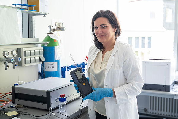 Welche neuen, nicht-invasiven Untersuchungsmethoden sich für den Nachweis auf bakterielle Keime in der Lunge und den Atemwegen etablieren könnten, erforscht die Arbeitsgruppe um Sybelle Goedicke-Fritz im aktuellen Projekt. Die Wissenschaftlerinnen und Wissenschaftler setzen hier auf die Analyse sog. flüchtiger organischer Verbindungen (Volatile organic compounds, VOCs), die mit jedem Atemzug eines Lebewesens abgeatmet werden. Diese VOCs bestehen zu einem großen Teil aus Metaboliten, die aus dem körpereigenen Stoffwechsel stammen und so wichtige Informationen über die Art und Aktivität sowie über den Zustand des Organismus geben können.
