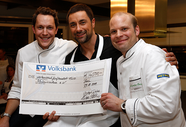 Am 29.10.2009 hat TV-Moderator Marco Schreyl im Kochatelier Bonn den Startschuss zur neuen Charity-Eventreihe „Schutzengel, bitte zu Tisch!“ gegeben. Zusammen mit den beiden TV-Köchen und Mukoviszidose-Botschaftern Christoph Dubois und Klaus Velten bat der DSDS-Moderator 50 Gäste an die reichlich gedeckte, mediterrane Schutzengel-Tafel. „Wir danken den beiden Gastgebern und den Gästen für ihren Einsatz und hoffen sehr, dass viele Hobby- und Profiköche ihrem Beispiel folgen und Schutzengel-Essen zugunsten von Betroffenen initiieren. Denn eins ist sicher: Nur gemeinsam werden wir Mukoviszidose besiegen können!“, sagte Marco Schreyl.