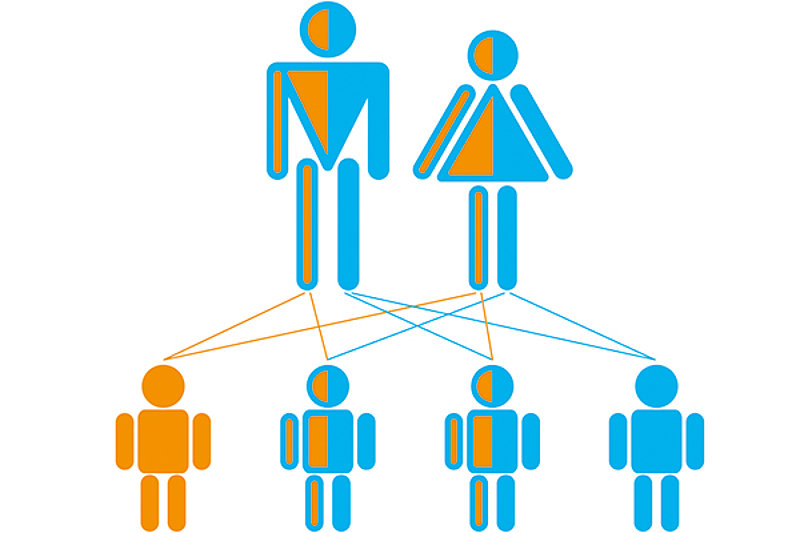 Mukoviszidose tritt als Krankheit nur auf, wenn bei einem Menschen beide Allele des CFTR-Gens verändert sind. Wenn ein Elternpaar ein Mukoviszidose-krankes Kind bekommt, kann man davon ausgehen, dass beide Eltern Träger eines mutierten CFTR-Gens sind. Mutter und Vater geben nach dem Zufallsprinzip jeweils eines ihrer beiden CFTR-Gene an das Kind weiter. Sind beide Eltern Merkmalsträger, das heißt sie sind selber gesund, tragen aber jeweils ein mutiertes Gen in sich, kann es mit einer statistischen Wahrscheinlichkeit von 25% passieren, dass das Kind von jedem Elternteil das mutierte Gen erhält und somit Mukoviszidose hat.