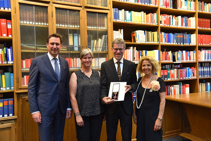 Bonn, München, 12. Juli 2019. Im Rahmen einer feierlichen Zeremonie im Münchner Justizpalast konnte Stephan Kruip am 10. Juli die Ordensinsignien des Bundesverdienstkreuzes entgegennehmen, überreicht von Georg Eisenreich, dem bayerischen Justizminister. Ausgezeichnet wurde damit Kruips jahrelanger ehrenamtlicher Einsatz für den Mukoviszidose e.V., die Bundesvereinigung für Menschen mit Cystischer Fibrose (CF, Mukoviszidose). Selbst von der seltenen Erbkrankheit betroffen setzt er sich für eine größere Bekanntheit der Erkrankung, für Fortschritte in Forschung und Therapie und für angemessene Versorgungsstrukturen für die Patienten ein.
