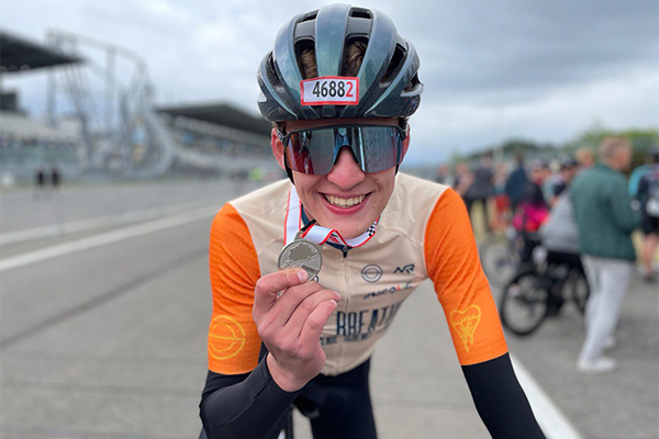 Das scheint für den Youngster im Team zunächst kein Problem zu sein. Der 18 Jahre junge Noah Glasstetter aus Würzburg zieht als Teamstarter in der ersten Runde am Feld vorbei und fährt erstaunliche 45 Minuten. Beachtlich, weil dies sein erstes Straßenrennen ist. Und noch beachtlicher, weil auch Noah Mukoviszidose hat. Stolz trägt er daher das Gruppentrikot, das er für das Team entworfen hat: Neben den Schutzengelflügeln des Mukoviszidose e.V. ist dort „Just breathe“ zu lesen. Ein Motto, das jeder im Team stolz auf der Brust trägt, um auf Organspende aufmerksam zu machen. Denn trotz medizinischer Fortschritte - gut sichtbar in den Leistungen von Raphael und Noah, die beide u.a. von Kaftrio profitieren - müssen viele Patienten und Patientinnen noch immer lange auf ihre Transplantation warten … manche zu lange. Grund dafür: es gibt nicht genügend Spenderorgane. Deutschland bildet hier leider noch immer das Schlusslicht in Europa. Um das zu ändern, hatte Reiner Heske die Idee entwickelt, um mit der Aktion Aufmerksamkeit genau dafür zu wecken: „Wir möchten die Menschen mit unserer Geschichte erreichen, um die wichtigen Themen Organspende/Organtransplantation und das Leben mit einer seltenen Erkrankung in die Öffentlichkeit zu bringen.“ Und Noah ergänzt: „Ich fahre das Rennen nicht nur wegen der Platzierung, sondern gerade für die, die selbst nicht Radfahren können.“