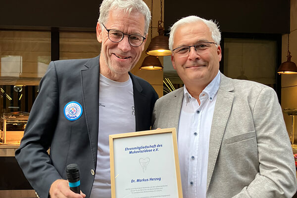 Verleihung der Ehrenmitgliedschaft des Mukoviszidose e.V. an Herrn Dr. Markus Herzog für seine besonderen Verdienste und den außerordentlichen Einsatz für Menschen mit Mukoviszidose